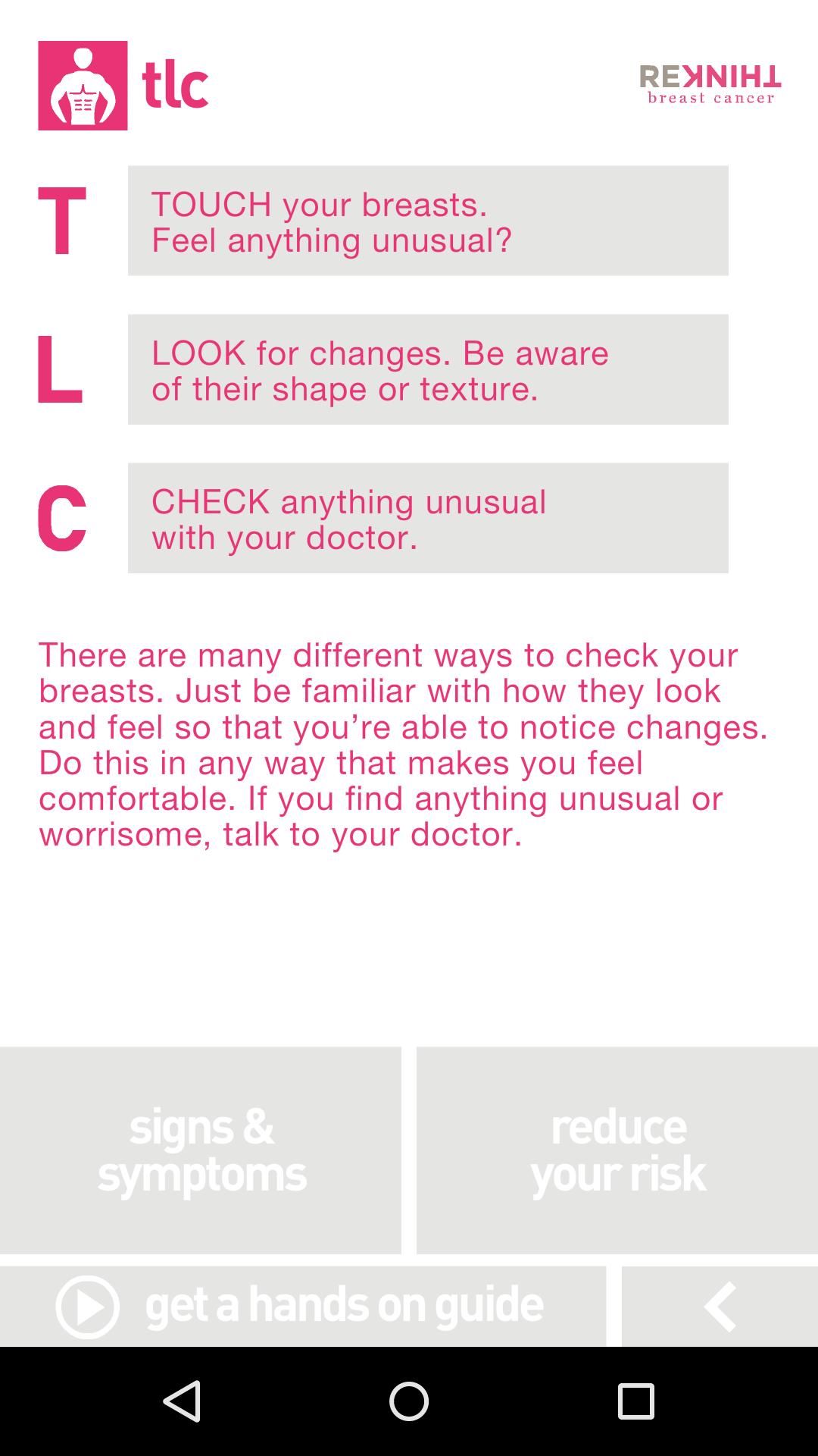 -TLC:触摸。看。查看。了解如何使用TLC检查乳房。