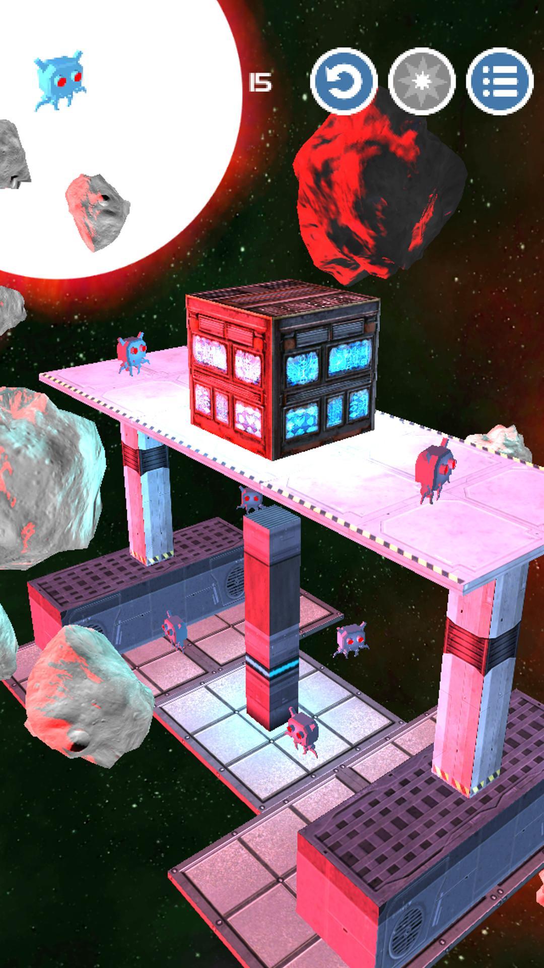 较旧的机器人模型可以通过单个激光射击破坏,但是要当心,最新型号更具弹性,您需要机智才能完成它们。如果您想成功完成任务(为了人类的生存,我们希望您能做到),您必须使用触手可及的所有元素:小行星,彗星,传送者,空间站的元素...一切都可以摆脱机器人!
