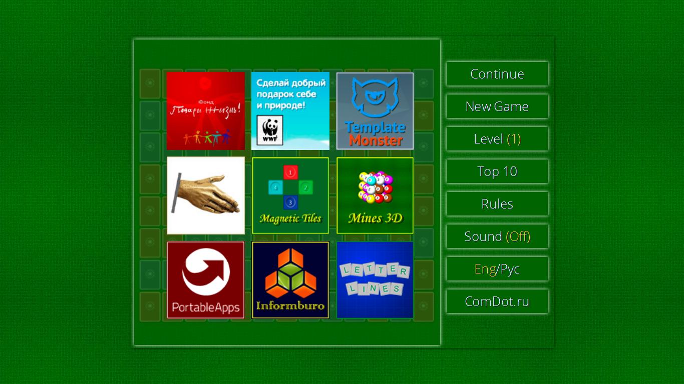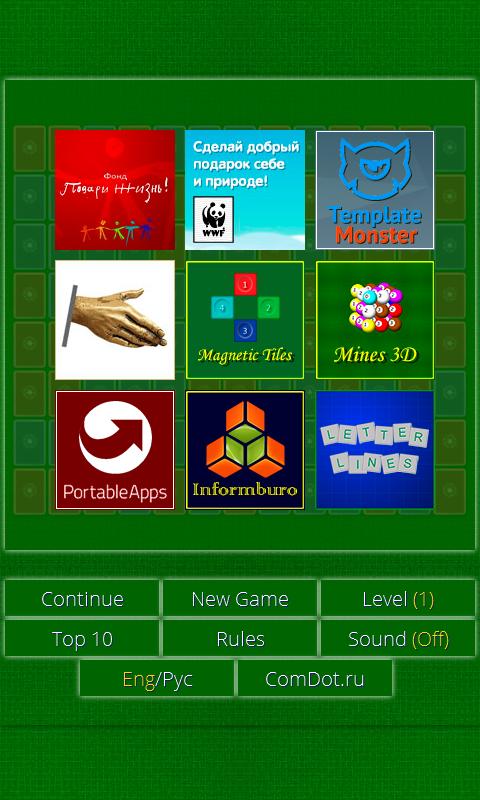 2。只有可以用最多三行连接的两张卡即可删除两张卡。线只能是水平的或垂直的。线可以只越过空位置,带有推翻卡的位置,并且可以超越田野。