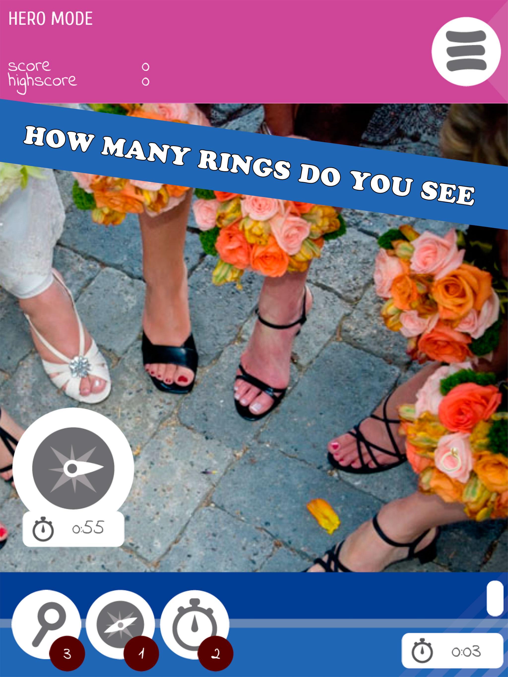 查找图片中某个地方隐藏的所有环。这是经典的隐藏对象游戏。它的水平很少,因此您需要快速玩才能根据规则完成游戏。在每个级别上,戒指都很难发现,但是您有一个进度栏,向您展示需要找到多少戒指才能完成当前水平。因此,不要浪费时间,开始搜索幸福的环。