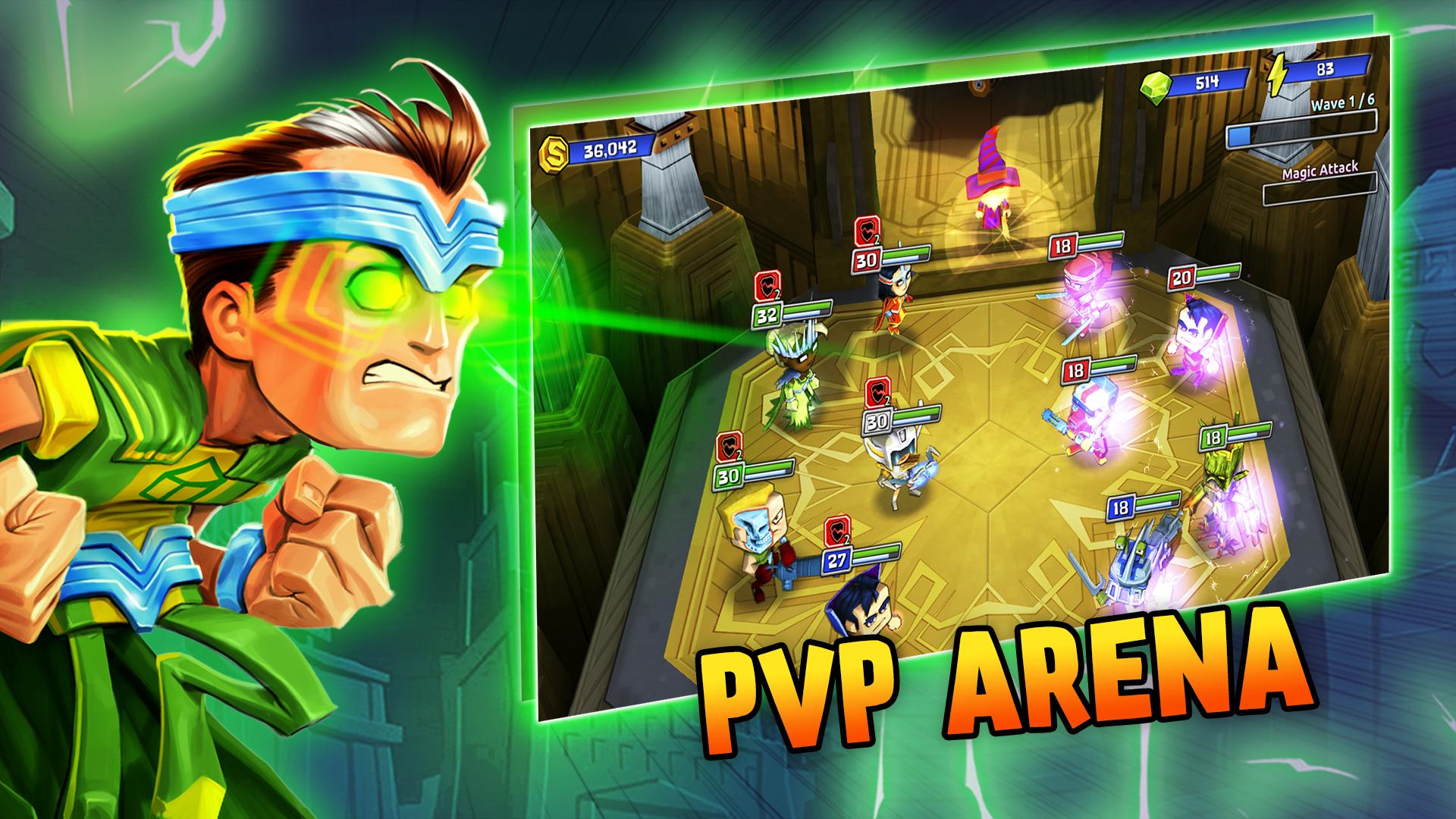 在此基于回合的RPG中解锁隐藏的超级力量!升级,发展,改变并将您的英雄传说成一个更强大的英雄团队。使用Fusion,创建终极动作RPG团队,享受这场超级英雄的战斗,您将能够以最佳的闲散英雄击败每个小人队!战争正在等待您的新策略RPG!