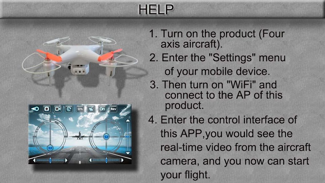 该应用程序可以通过Android智能手机的WiFi控制飞机