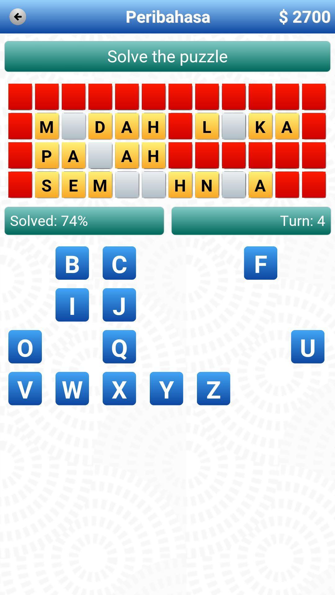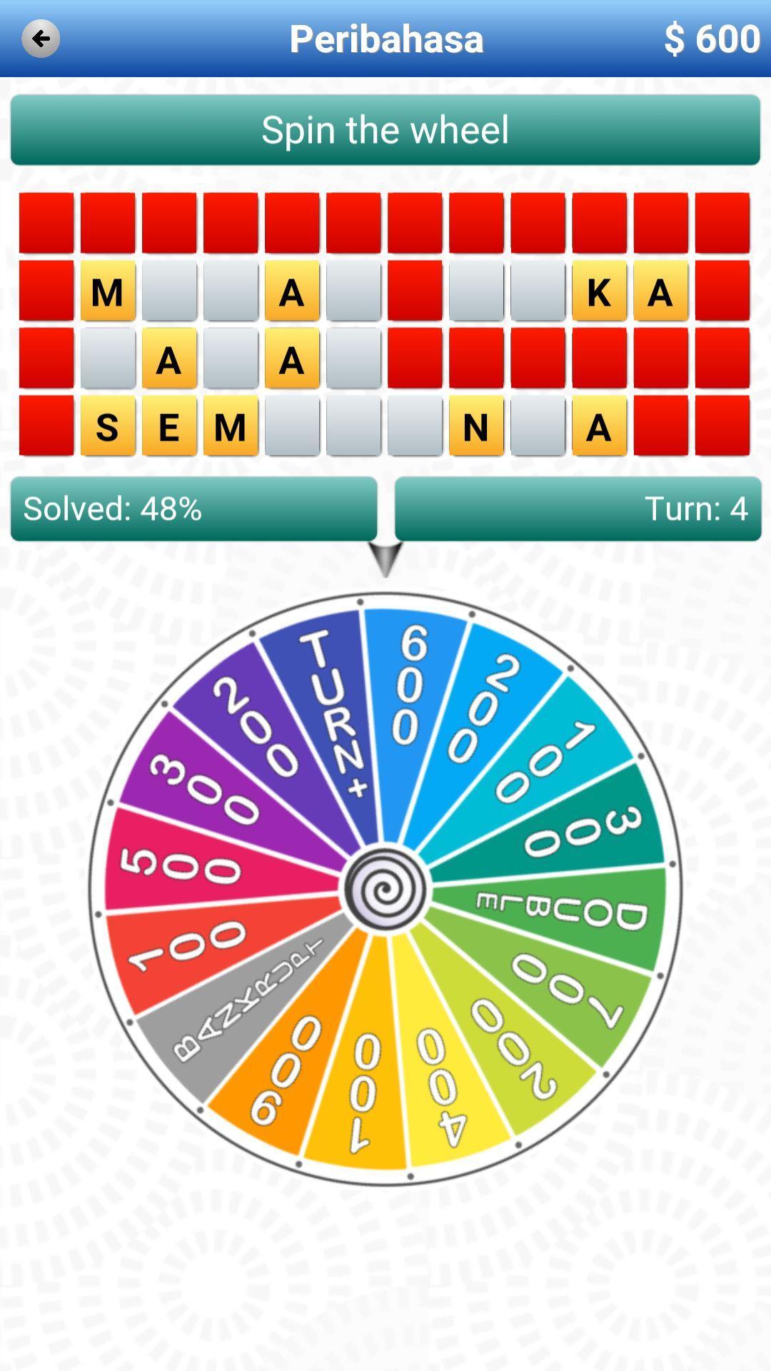 Roda Jutawan与Bahasa Melayu(Malay)短语是一场有趣而激动人心的游戏。旋转方向盘并选择正确的字母以收集最高点。测试您的知识,尝试运气并猜测短语。