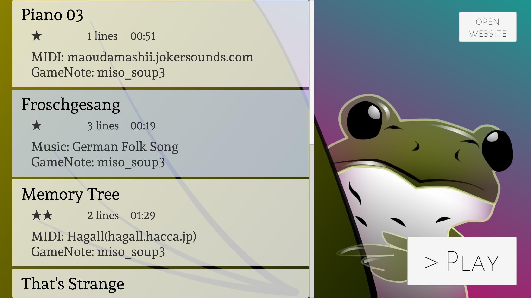 游戏中使用的歌曲的分数和引文来源在网站上。