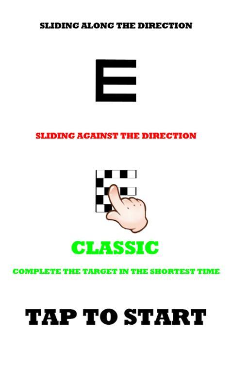 Slide One Slide是对敏捷性随意游戏的测试,视力和创意游戏。还记得视力测试吗?根据“ E”在手指活动的开头方向上,否则失败了!小心的特殊颜色“ e”哦,您需要朝相反的方向滑动手指。匆忙的时间,不要忘记使用火箭摧毁所有石头。分为经典,街机,时间三个模式测试玩家机智!来吧,视敏度!