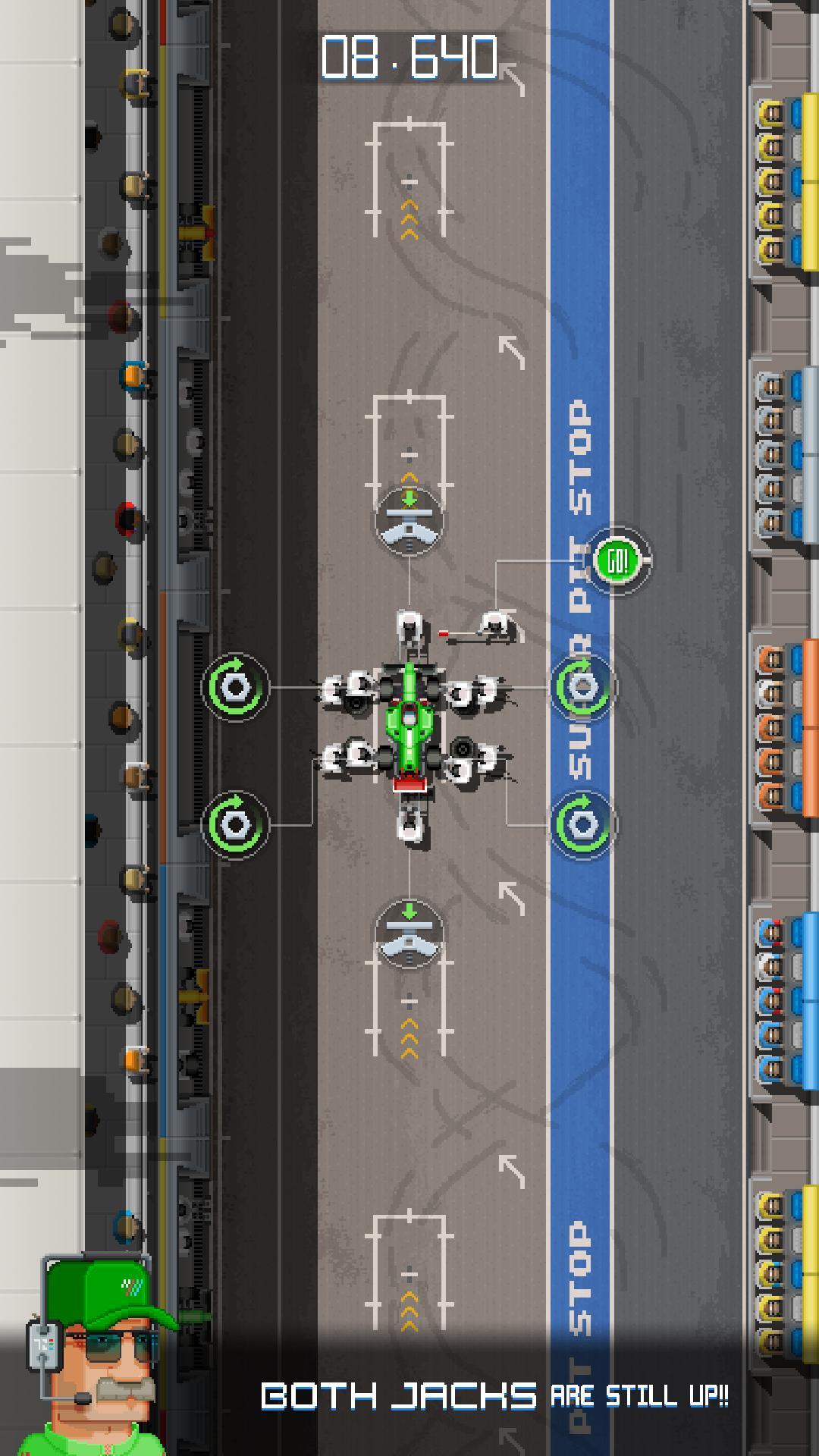 Super Pit Stop是令人上瘾的复古按钮basher,您必须在其中执行最快的...坑停止...有史以来!