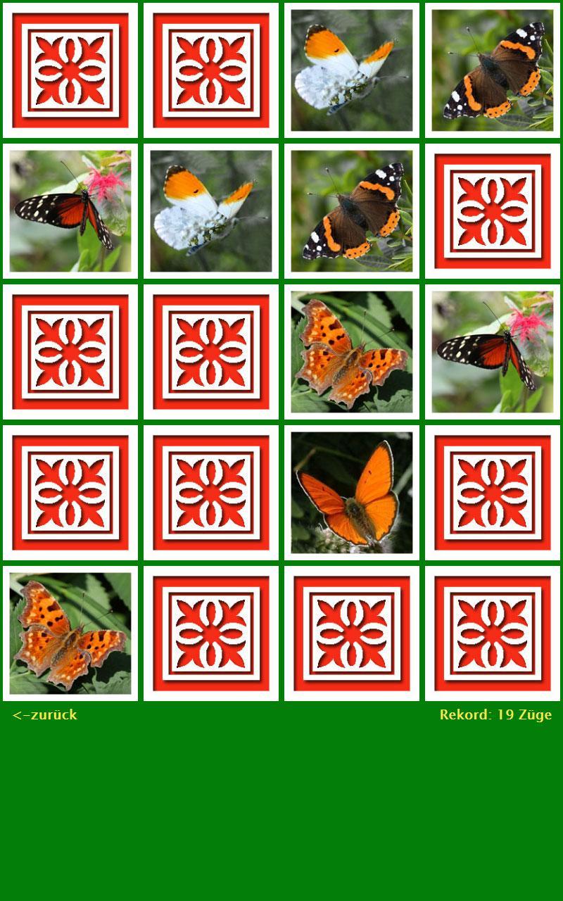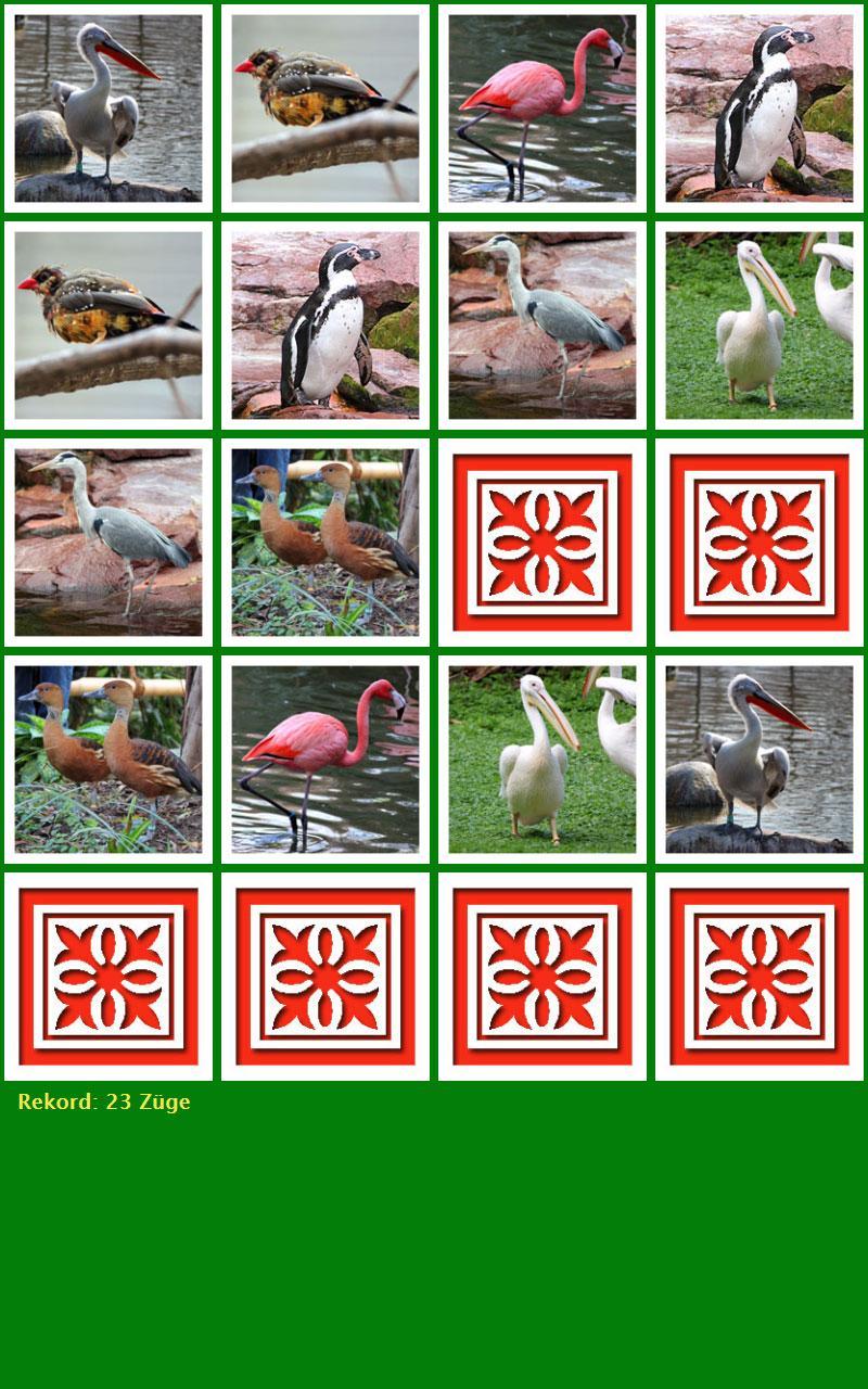 游戏开始时,所有卡都隐藏了。通过敲击卡可以发现这一点。当第二张卡与第一张相同时,两者都保持不覆盖,否则两者都会逆转。游戏的目的是尽可能少地找到所有的图片。