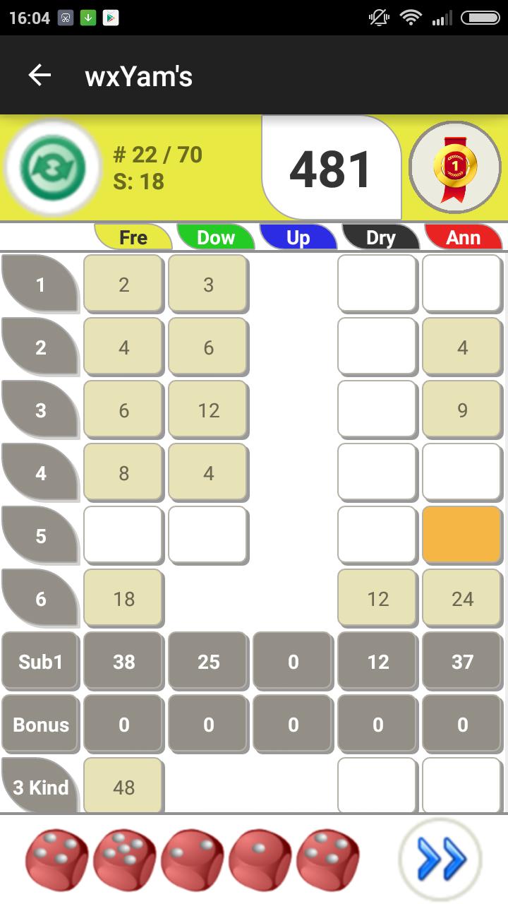 WXYAM是山药(或Yathzee或Yum)游戏的变体。
