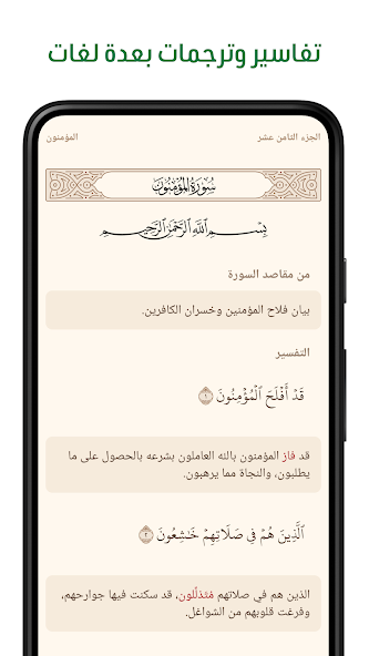 以即時結果搜索整個古蘭經,或通過輸入其號碼跳到特定頁面。