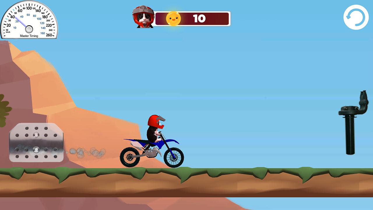 有很多陷阱和驚喜,引導您的小貓越野摩托車騎手直到測試結束。