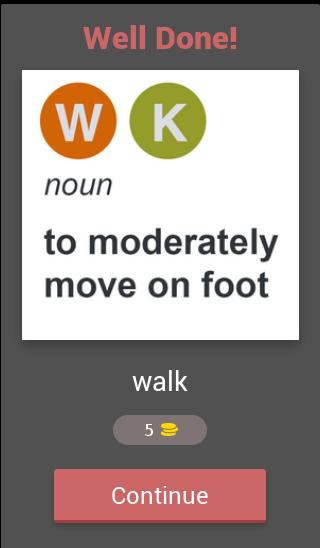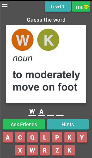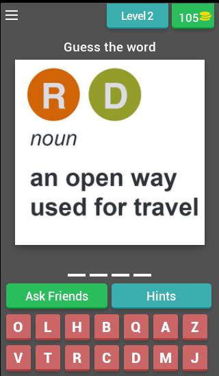 每個級別都帶有單詞的第一個和最後一個字母作為您的提示,以及其描述以及語音的一部分(名詞,動詞,形容詞等)。