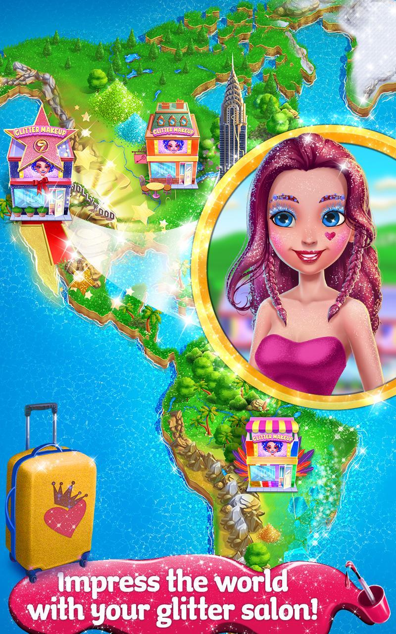 準備自己經營自己的Glitter化妝沙龍!您的沙龍真是太棒了,您需要在世界各地開放更多的沙龍!在客戶的化妝外觀中添加無限的閃閃發光和閃耀,並讓它們感到高興!